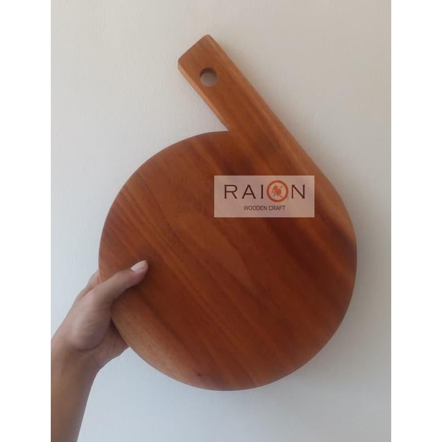 Jual talenan kayu jati bulat pizza 30cm wooden cutting