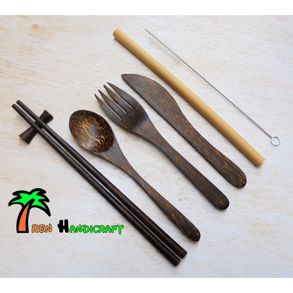 Sendok garpu pisau sumpit sedotan set kayu aren . Sumber Gambar : shopee.co.id